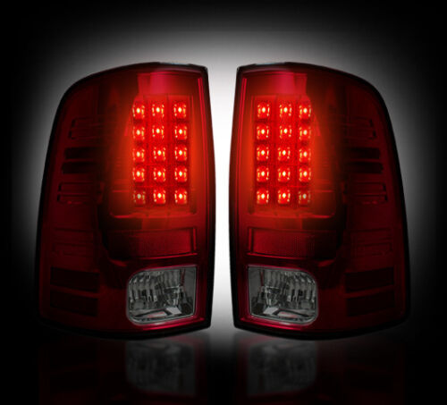 2009-2013 Ram 1500 2500 3500 Rear Dark Smoked Red Taillights w/ Brake LED Bulbs